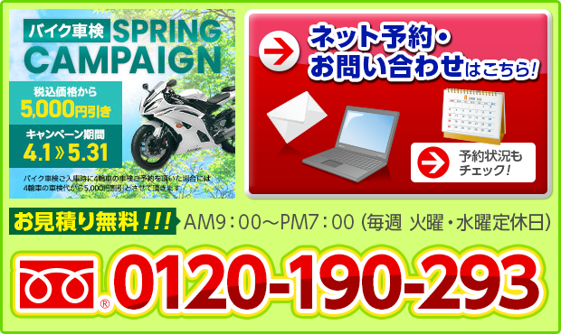 2026年1月5日 バイク車検ウインターキャンペーン実施中! 期間限定でグローブをプレゼント 2025年11月26日 ホリデーバイク車検、好評につき延長! 12月31日までのキャンペーン実施中 2025年11月26日 年末年始のお知らせ 2025年11月1日 ホリデーバイク車検スタート! 11月1日~30日まで限定のキャンペーン実施中 2014年6月29日 WEBサイトをOPENいたしました。 なぜそんなに安くて早い車検が出来るのですか? 「ホリデー車検」は従来の車検をシステム化することで、効率を上げ低価格を実現いたしました。 立会い説明し、整備する箇所、しない箇所をお客様に決定して頂きます。さらに下廻り洗車・下廻り塗装・外部洗車・ワックス掛け・室内清掃・試運転など、法律で定められていない箇所を行いませんので、低価格で提供することができます。 立会い説明とは何ですか? 当社メカニックが分解、点検を行い、その後お客様に直接お車をみていただきご説明申し上げます。 その際、不具合な点や整備が必要な箇所があれば同時にご説明し、お客様のご了解の後、整備を行ないます。 車検後のアフターフォローはどうなっていますか? 次回の車検や定期点検のご案内を、はがきや電話等でご案内いたします。 また立会い説明の時に、お客様とご相談いたしました後日整備の時期になりましたら、はがきや電話等でご案内させて頂きます。 お車の調子の悪い時や、突発的な故障、事故等にも迅速にご対応させていただきますので、ご安心ください。お気軽にご連絡ください。 ※ご不明な点がありましたら、直接加盟店にお問合わせ下さい。 車検当日に必要なものは何でしょうか? 車検当日にお持ちいただくものは、 ●車検証 ●自動車損害賠償責任保険証明書(自賠責) ●納税証明書 ●印鑑(認め印) ●車検費用 ●車検ガイドブック(ご予約後、お客様にお渡しする書類) 以上お忘れのないようお願いいたします。 ホリデー車検を受けた後に陸運局に行く必要がありますか? その必要はありません!ユーザー車検の場合は陸運局に行って自ら検査をしていただかなくてはなりませんが、ホリデー車検の場合は自社工場で陸運局と同じ検査を行い、その後の書類手続きも私どもが責任を持ってご対応いたしますので、ご安心ください。